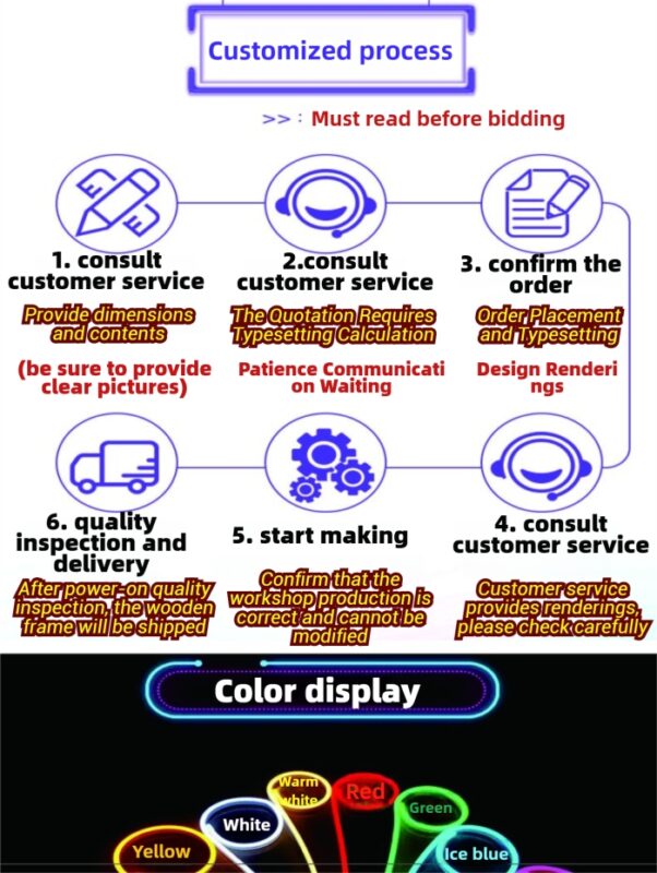 A1: The process for creating your personalized neon signage is straightforward. Simply share your design idea (e.g., company logo, favorite quote, or image) and the desired size and color. Our design team will work with you to create a preview for approval before we start production. No design experience is needed—we guide you every step of the way.