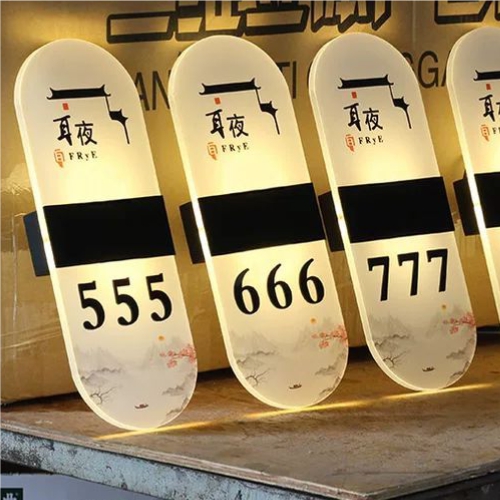 Professional custom Frosted Acrylic Signs! Customize colors, graphics, lighting, materials, and shape. Choose plug-in or battery power. Made with wood, stainless steel, and acrylic. Includes screw/hook mounting. Ideal for hotels, offices, and stores. Worldwide shipping.