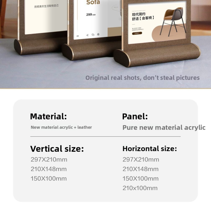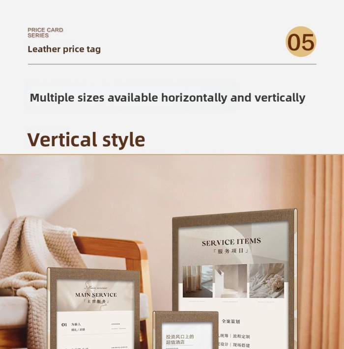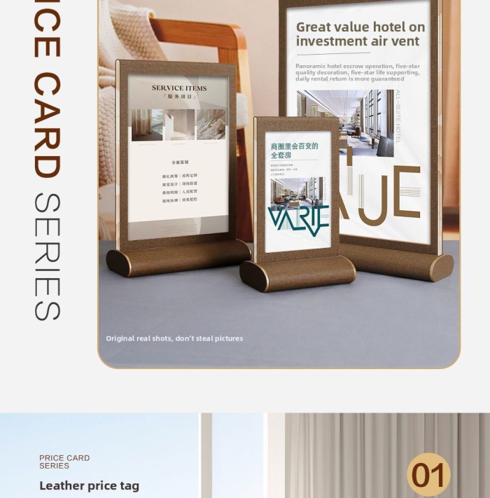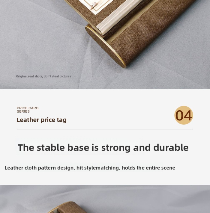 Ideal for high-end hotel tables, conference room name plates, and retail product displays, this sign blends seamlessly into any environment. The leather finish especially suits luxury, business, and artistic brands.