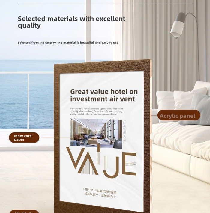 As a double sided tabletop display, it showcases two independent messages simultaneously. The interchangeable graphics system allows tool-free updates, perfect for dynamic content needs.
