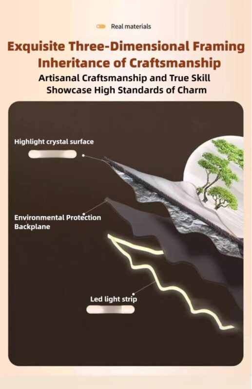 Its core lighting material is high-quality IED lights (Note: Likely intended as LED lights; retained as per original text), providing even, soft, and non-glaring light that perfectly restores the painting’s colors while offering comfortable ambient lighting. Whether for living rooms, bedrooms, hallways, hotels, restaurants, or offices, this LED Art Panel can become the focal point of any space, enhancing its overall style.
